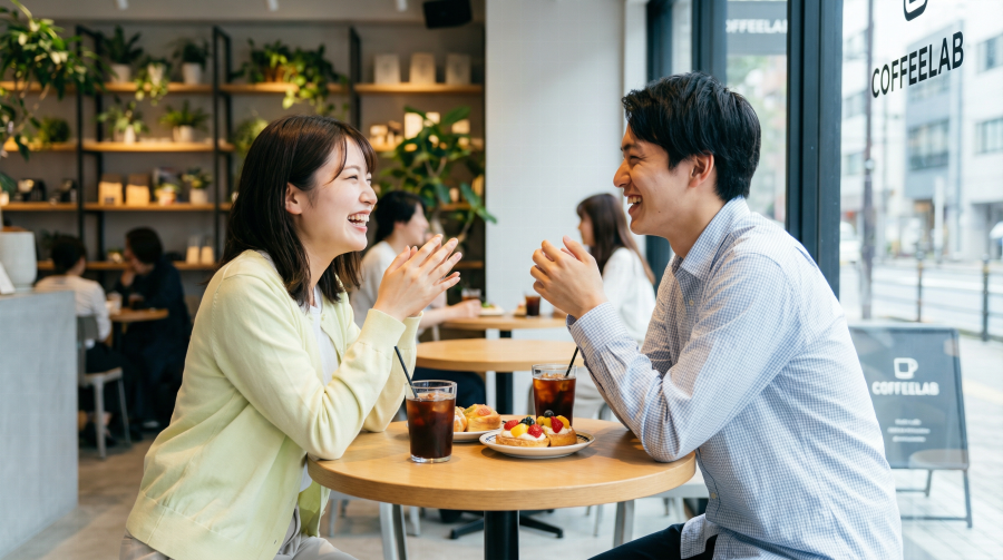 初めて会うときは、カフェでお茶したり、ランチしたり、公園を散歩したりと、気軽な場所を選ぶのがおすすめ。長時間だとお互い疲れちゃうし、もし合わなかったときに気まずいからね。会話は相手の話をしっかり聞いて、共通点を見つけるのがポイント!